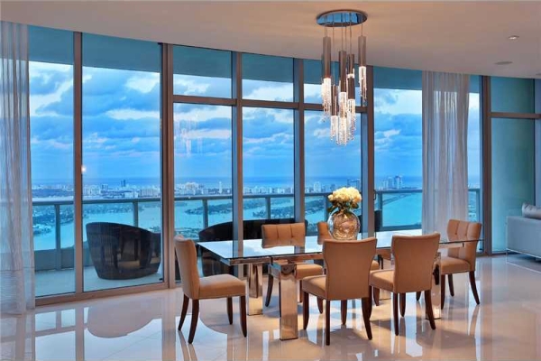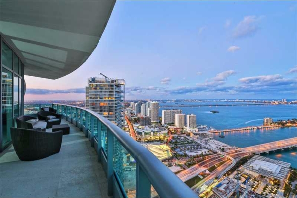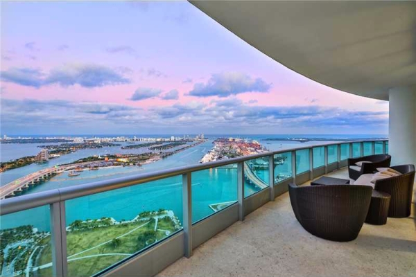 The condo is in the fourth-tallest building in Miami, a towering 63-floor skyscraper called 900 Biscayne Bay which overlooks its namesake lagoon, Biscayne Bay, off the eastern coast of Florida.