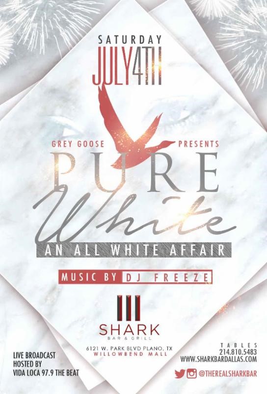 Shark Bar of Plano has their second 4th of July event, called the Pure White Affair. DJ Freeze on the ones and twos. Vida Loca from 97.9 hosting a live broadcast.
