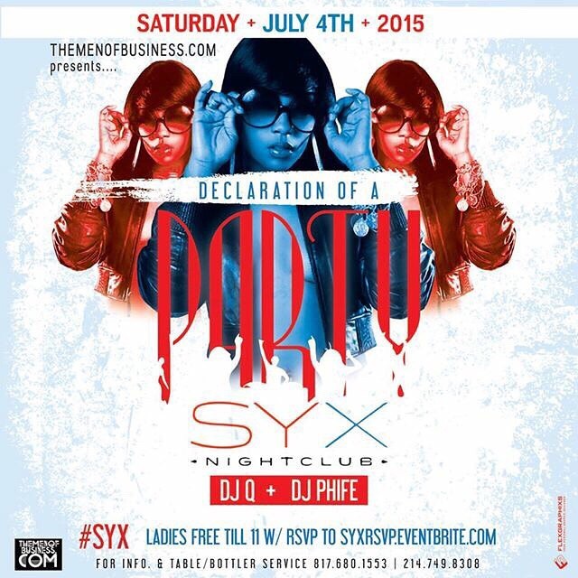 The Men of Business are at it again with their Declaration of a Party event at Syx Nightclub. DJ Q and DJ Phife will be mixin’ it up.