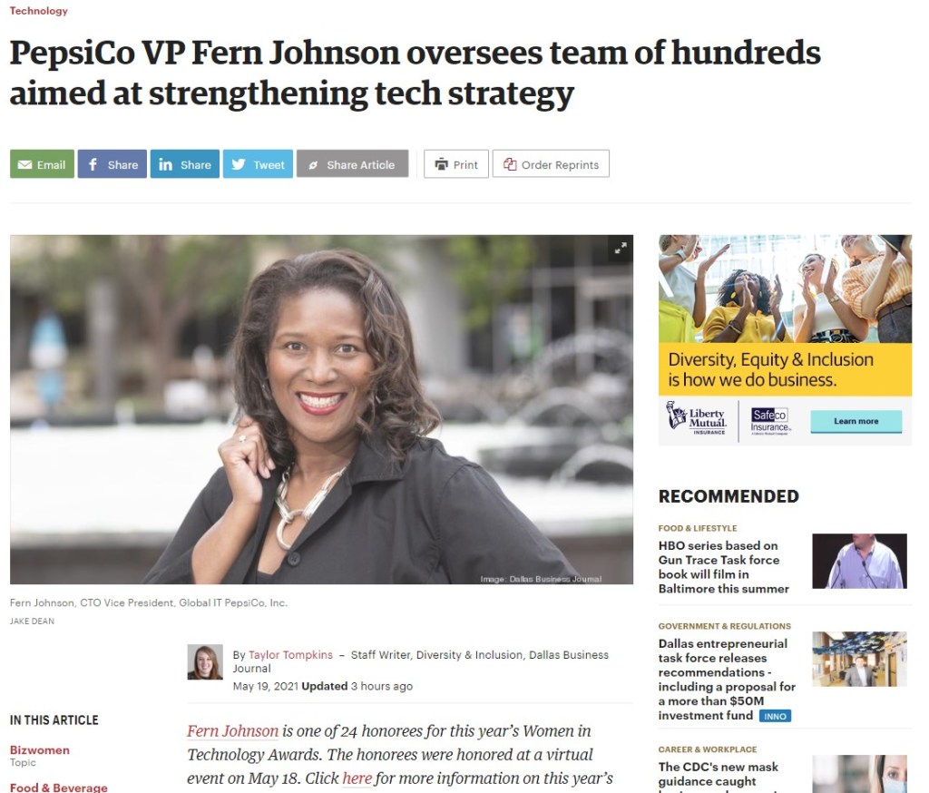 In addition to him, a May 19th article features a top executive sista at PepsiCo, Fern Johnson, who has just been honored in this year’s Women in Technology Awards. As the CTO Vice President of Global IT at the major beverage corporation, she is quite influential over major strategic tech initiatives across the multinational organization. Having worked her way up the corporate ladder there for 29 years, she oversees hundreds of people. Whew! Read the rest here.