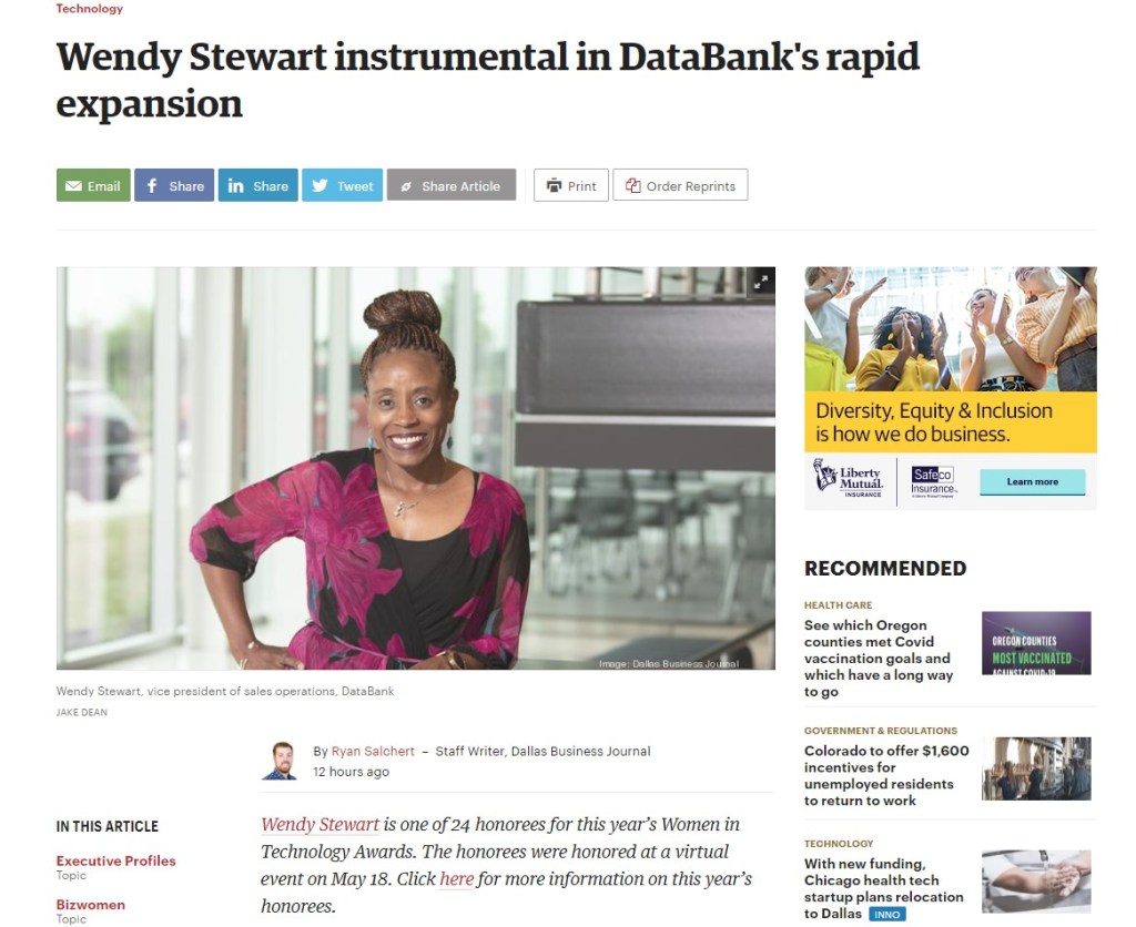 Continuing with Dallas Business Journal’s 2021 Women in Technology Awards, Wendy Stewart, VP of of sales operations for DataBank, oversees a several dozen major computer data centers across 29 key markets for the company. Oh wow! For those who don’t know, one data center can control the data and computer operations of thousands of employees impacting potentially millions of customers, depending on its configuration. So she’s a heavyweight when it comes to such tech power plants. Read her story here.