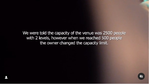 There was a disagreement regarding capacity. The event organizers claimed they were promised by the venue owner that the place can hold 2500 people. They even said they have proof on video of this.